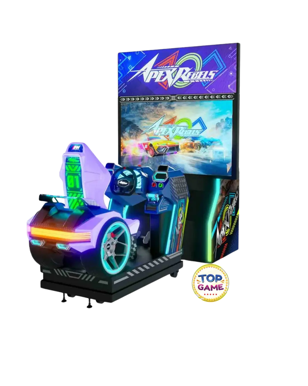 A Apex Rebels é uma nova máquina de arcade de corrida que leva a adrenalina das pistas para um nível extremo! Com gráficos de última geração, jogabilidade envolvente e uma experiência de pilotagem realista, essa máquina é perfeita para shoppings, buffets, parques indoor e fliperamas, garantindo emoção para jogadores de todas as idades.