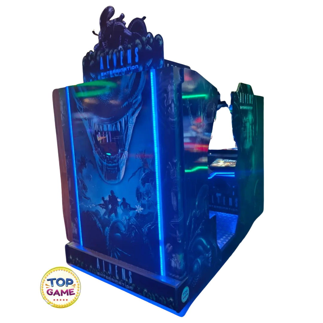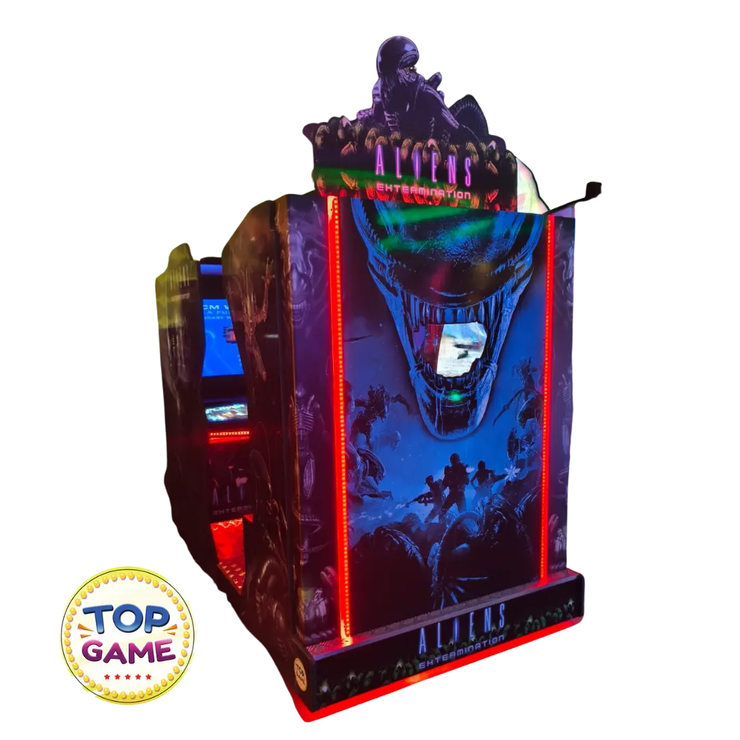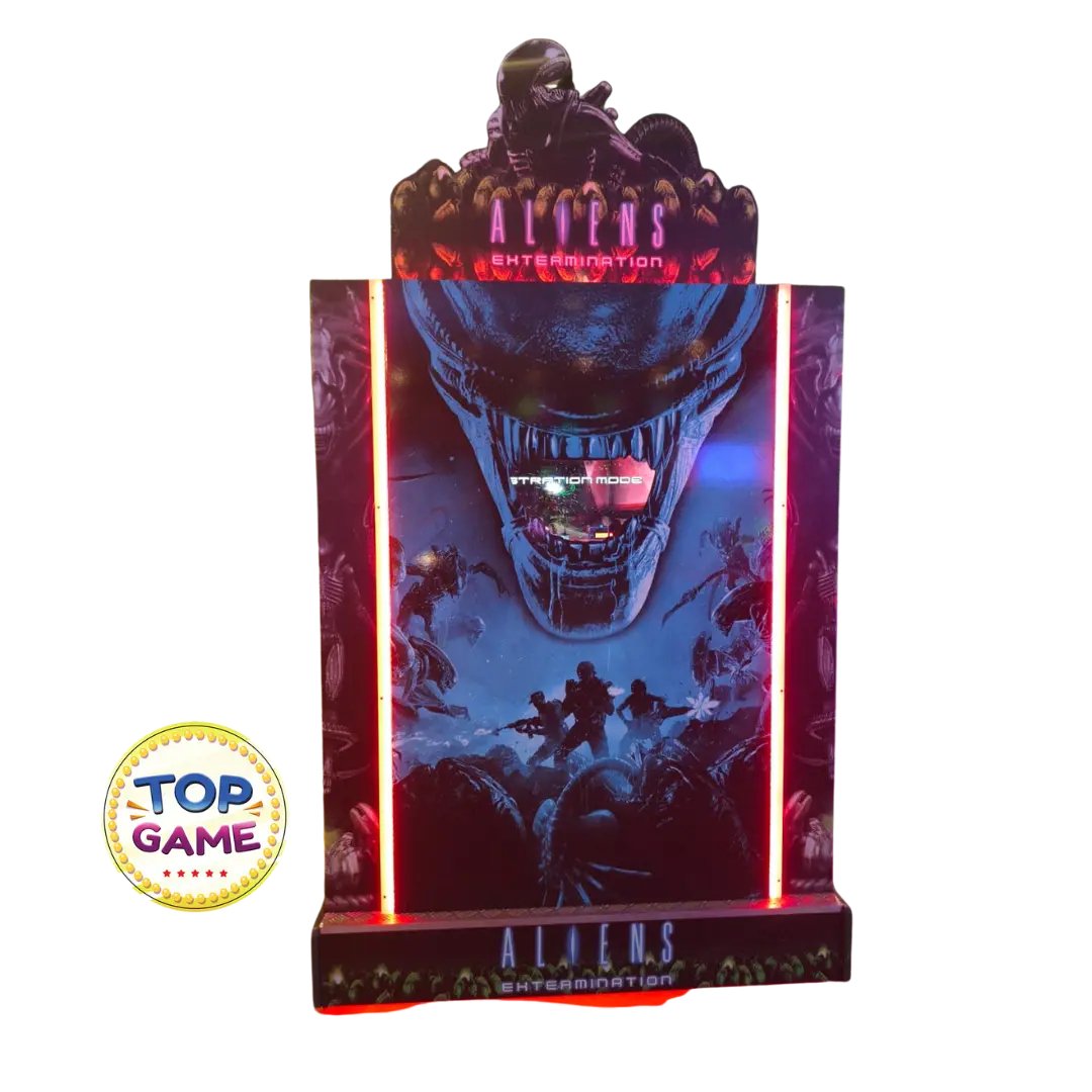 A Aliens Extermination Cabinada é uma máquina de arcade de tiro imersiva e cheia de ação, baseada no icônico universo dos Aliens. Com um design futurista, gráficos de alta qualidade e efeitos sonoros envolventes, essa arcade oferece uma experiência cinematográfica que transporta os jogadores para uma batalha contra hordas de criaturas alienígenas. Ideal para shoppings, buffets, parques indoor e fliperamas, essa máquina atrai jogadores que buscam desafios eletrizantes e adrenalina pura!