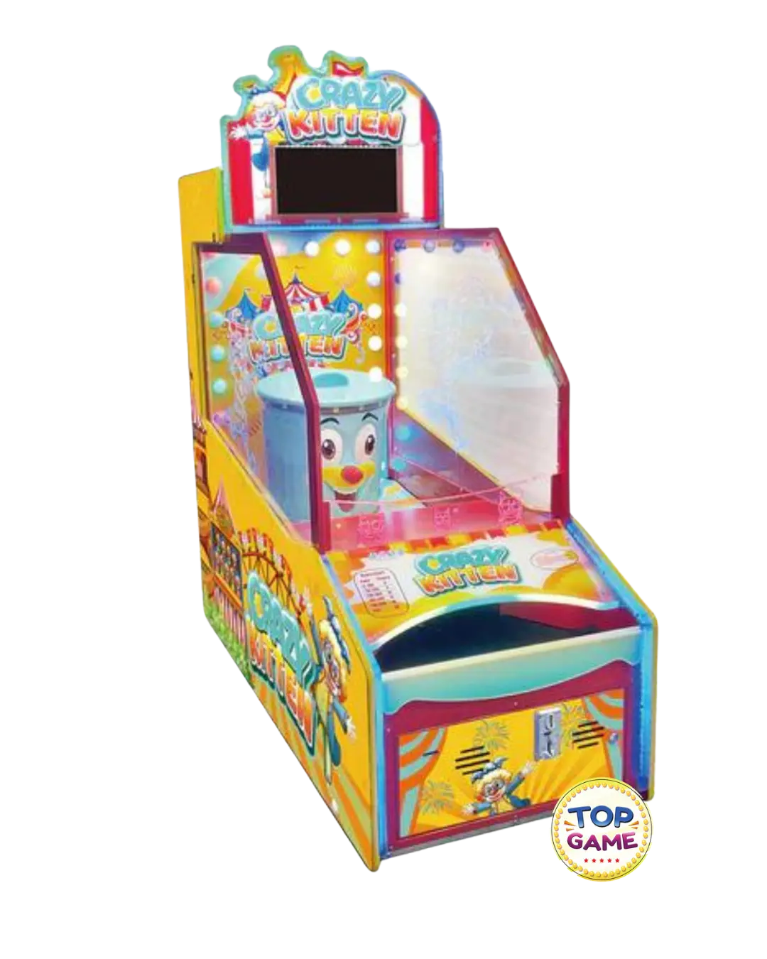 A Crazy Kitten é uma máquina de arcade divertida e interativa, projetada especialmente para crianças, que combina simplicidade e desafio em um jogo de arremesso de bolas. Com um design colorido e personagens cativantes, essa máquina é ideal para shoppings, buffets, parques indoor e fliperamas, garantindo entretenimento para os pequenos.