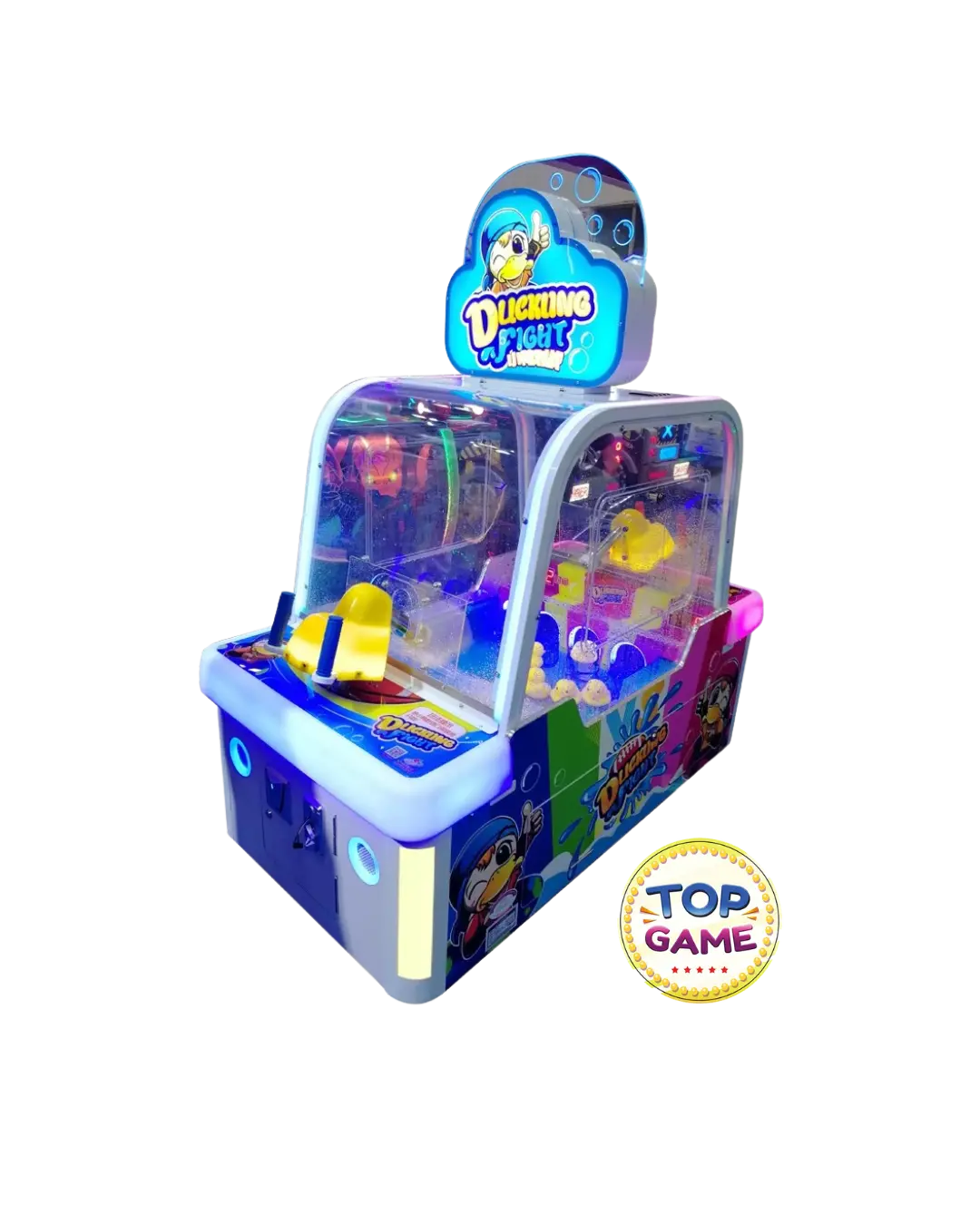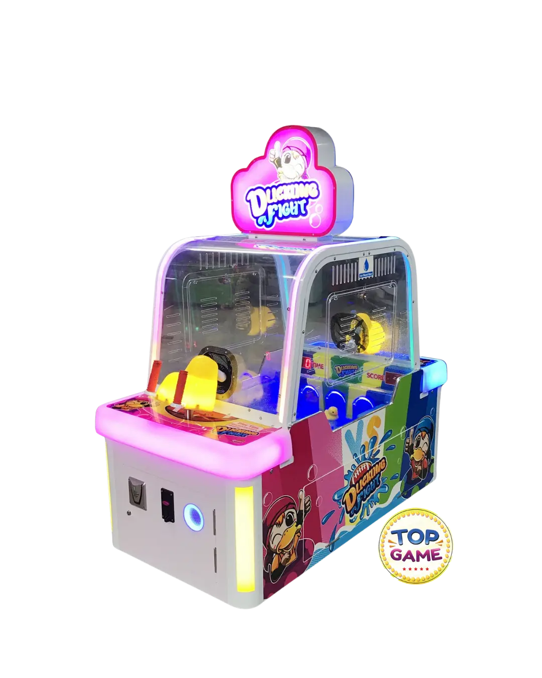 A Ducking Fight é uma máquina de arcade interativa e super divertida que coloca os jogadores em uma batalha de jatos d’água contra patinhos! Com um design vibrante e uma mecânica única, essa arcade é perfeita para shoppings, buffets, parques indoor e fliperamas, garantindo diversão para todas as idades.