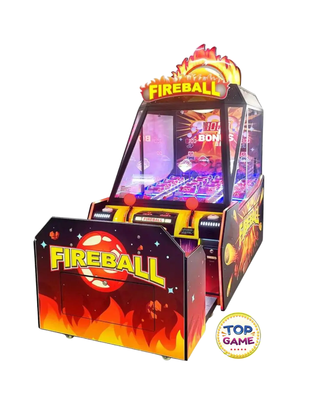 A Fireball é uma máquina de arcade empolgante e interativa, que desafia os jogadores a lançar bolas com precisão para marcar pontos e vencer o jogo! Com um design vibrante, efeitos de luzes LED e sons envolventes, essa arcade é perfeita para shoppings, buffets, parques indoor e fliperamas, garantindo diversão para todas as idades.