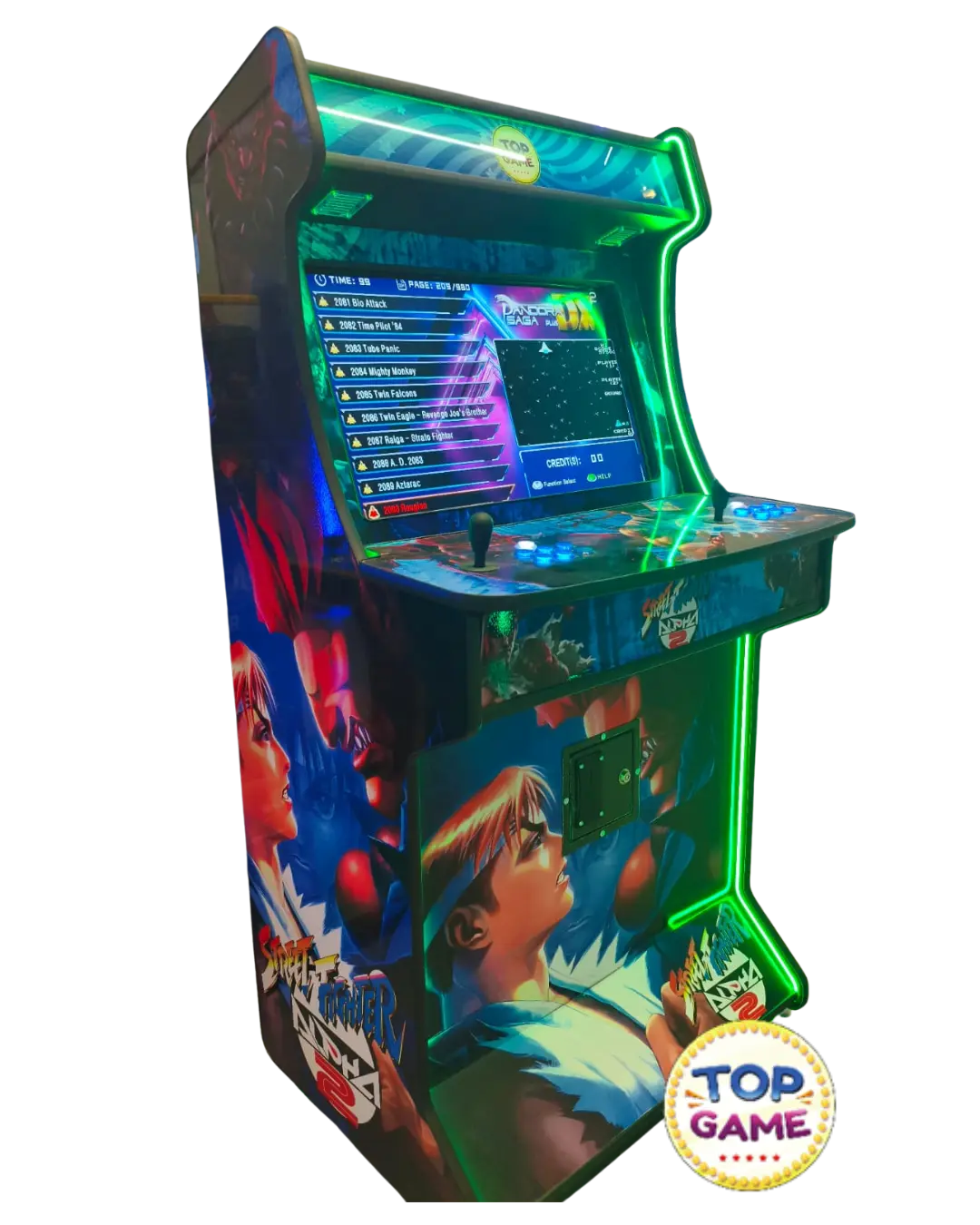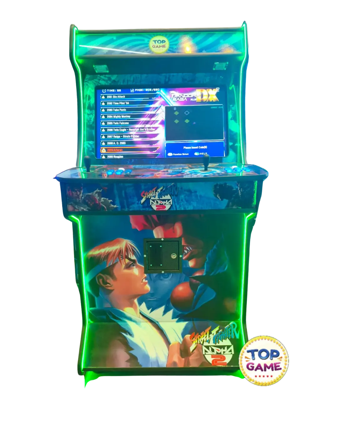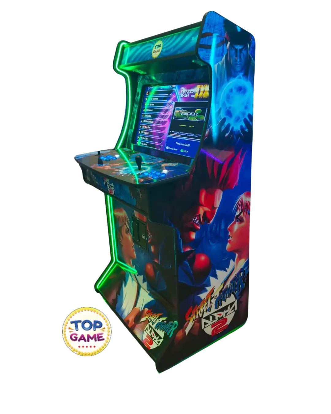 Essa é a máquina de sonhos de qualquer gamer retrô! O arcade multijogos vem equipado com centenas de clássicos atemporais, como Street Fighter, Mortal Kombat, Metal Slug, The King of Fighters, Cadillac Dinosaurs, Pac-Man, Tetris e muito mais!