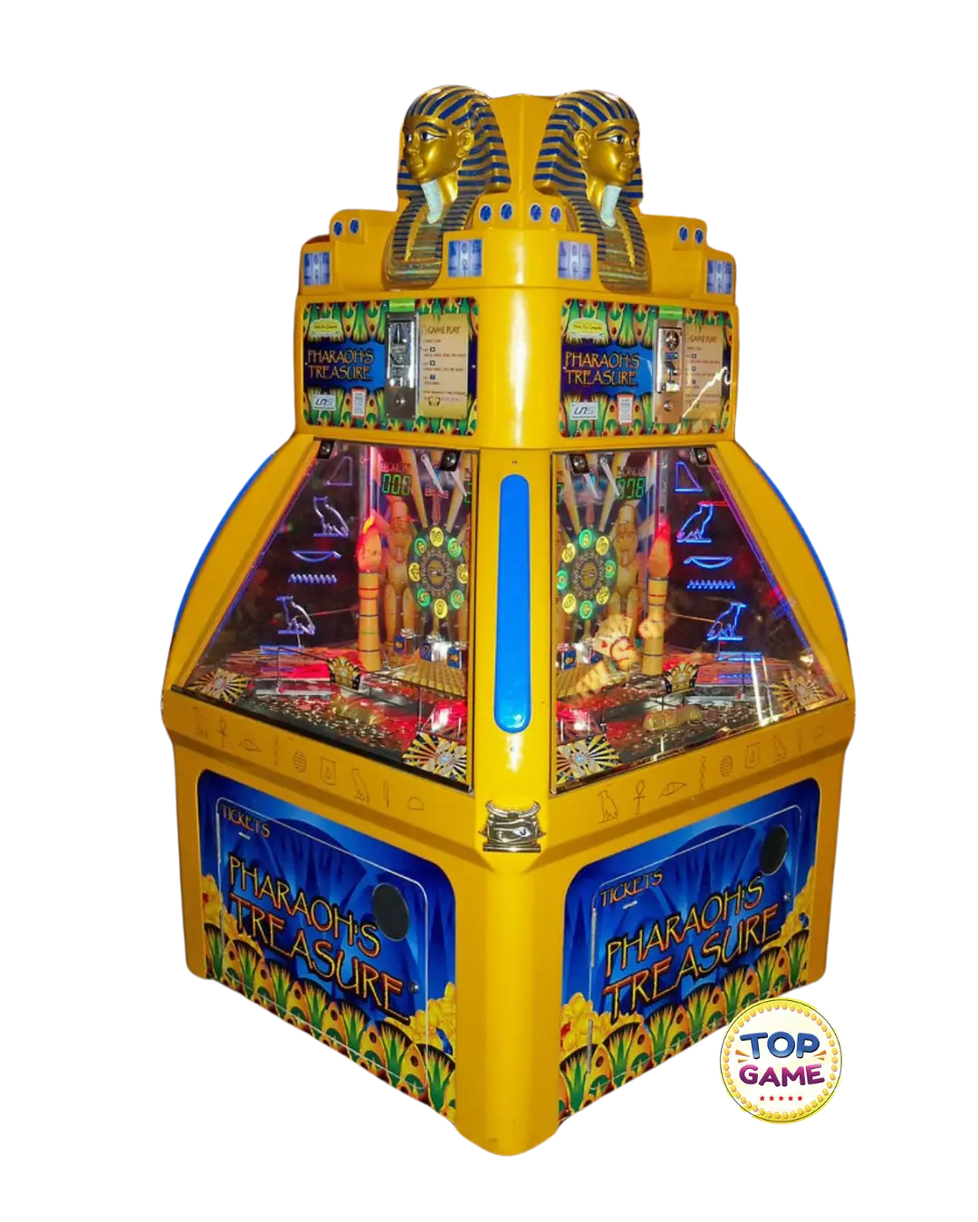 O arcade Pharaoh’s Treasure é uma verdadeira joia do entretenimento! Inspirado no esplendor do Antigo Egito, essa máquina é um token pusher em formato de pirâmide, super chamativo, com múltiplos lados para permitir que vários jogadores joguem ao mesmo tempo. Seu design é envolvente com luzes vibrantes, gráficos temáticos faraônicos e efeitos sonoros que fazem qualquer criança ou adulto se sentir em uma busca por tesouros perdidos!