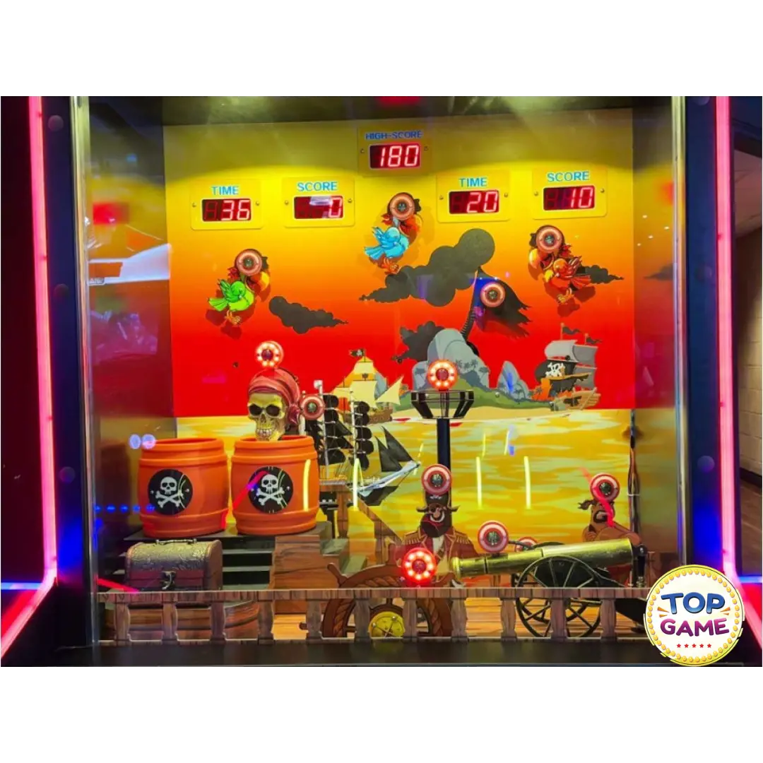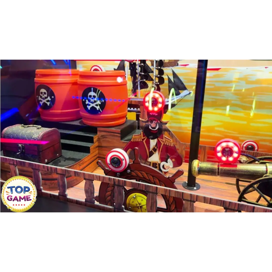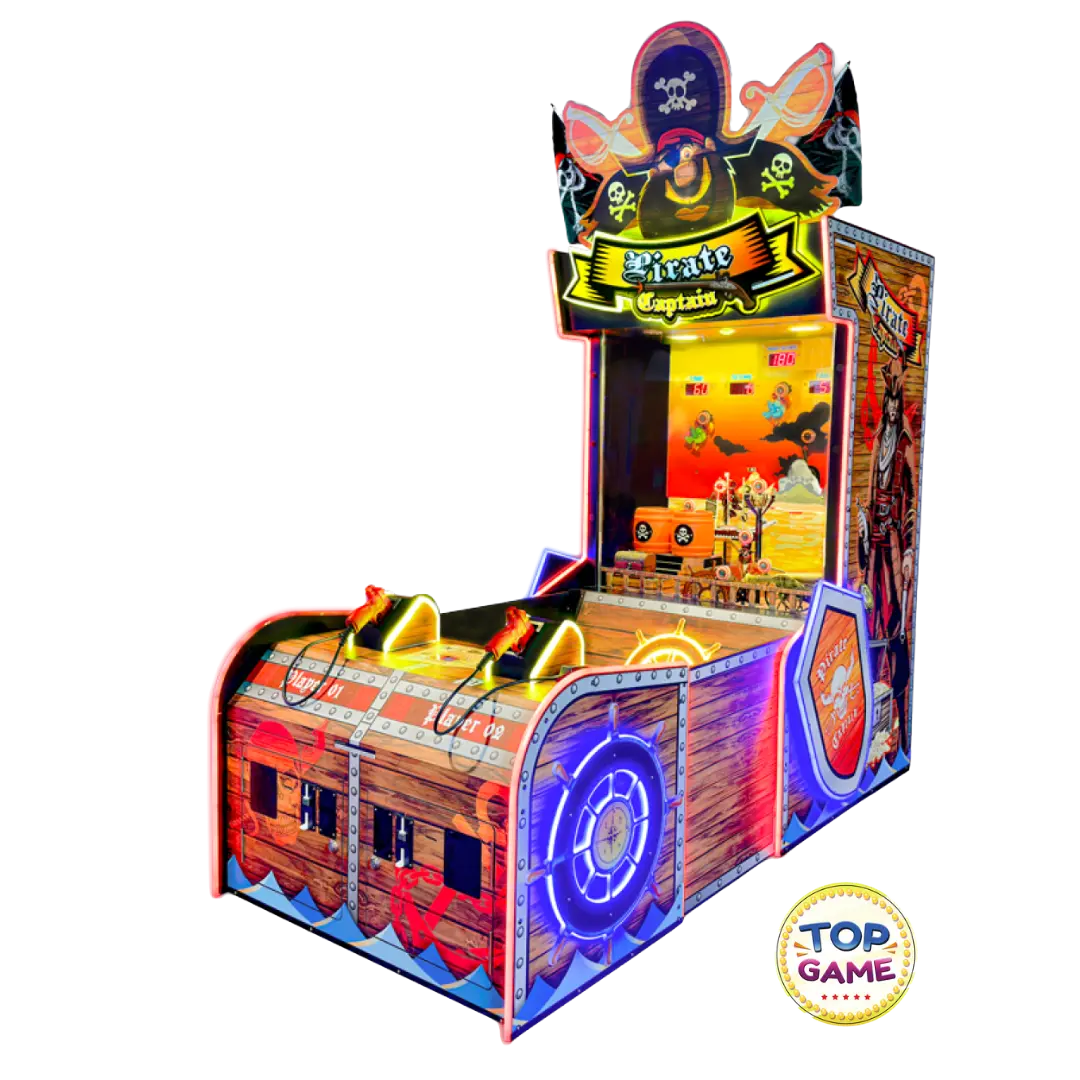 O Capitão Pirata é um Redemption de tiro baseado em habilidade para dois jogadores. A arte temática belíssima e a iluminação brilhante de LED atraem jogadores de todas as idades. O volante do navio multicolorido cria um recurso visual chamativo. A jogabilidade intuitiva faz com que os jogadores atirem nos alvos à medida que eles se iluminam, mantendo os jogadores engajados e tentando ganhar o máximo de tickets possível. E como eles se movem aleatoriamente, nenhum jogo é igual! O que torna este jogo um vencedor em qualquer arcade ou FEC são os alvos moldados detalhadamente, como pássaros, um canhão, barris explosivos, bandeira animada e o capitão pirata que se move de um lado para o outro para desviar dos tiros.