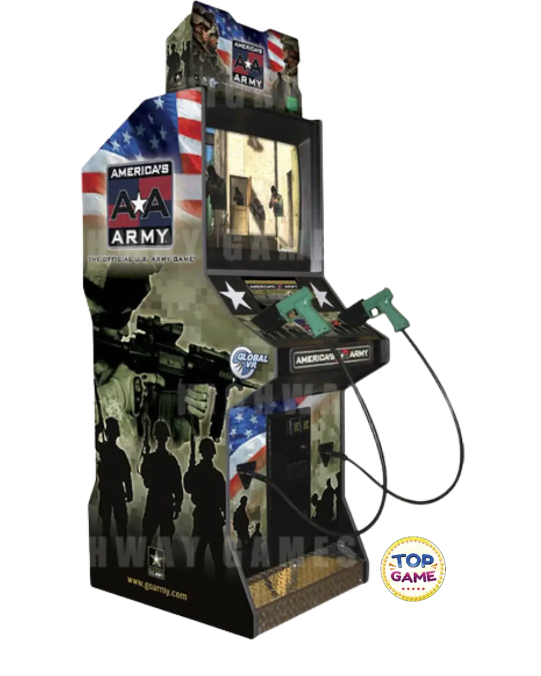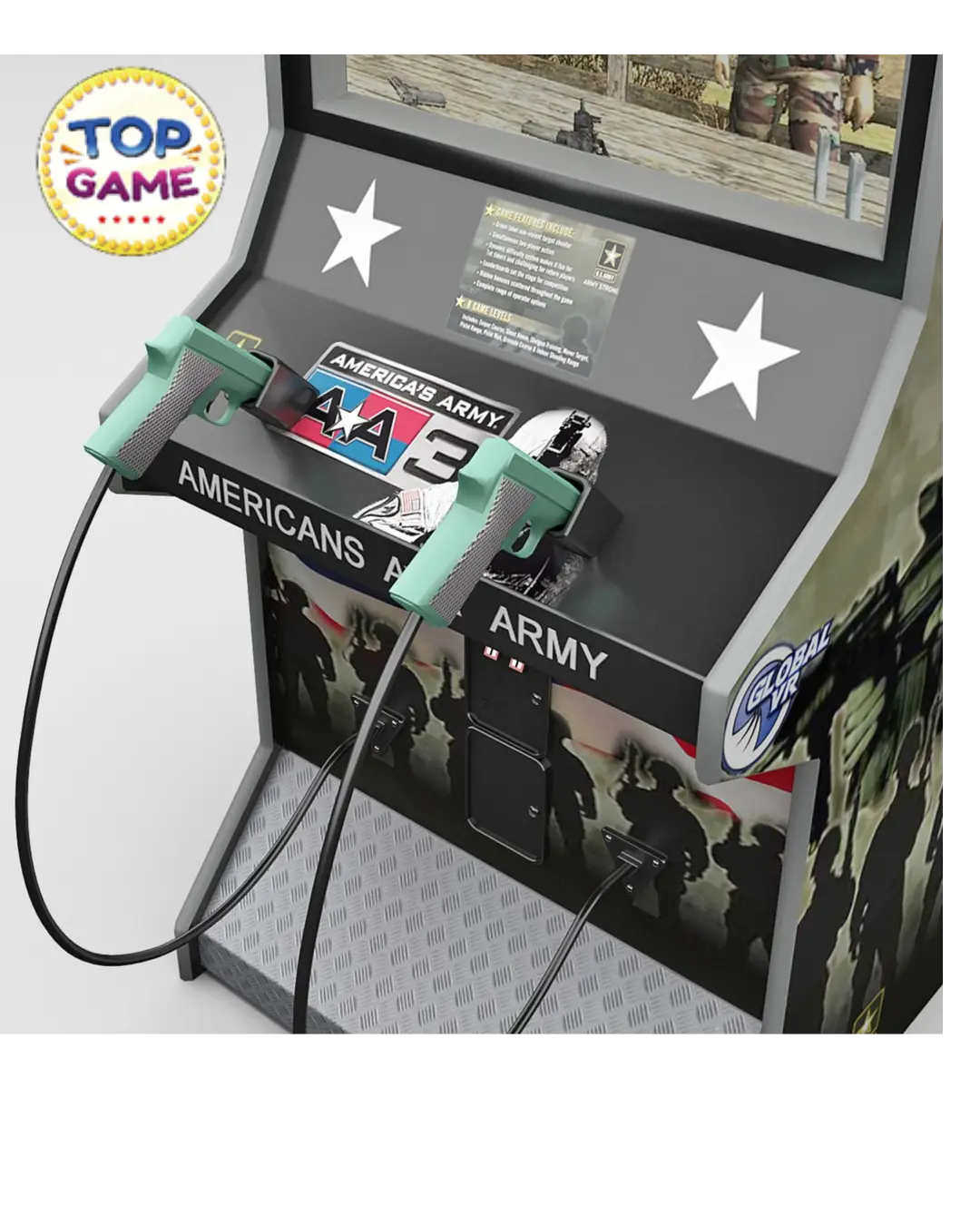 O Simulador de Tiro America’s Army é um simulador de tiro em primeira pessoa inspirado no famoso jogo da U.S. Army. Essa versão arcade leva toda a adrenalina do campo de batalha para dentro do seu espaço de entretenimento com realismo e desafio tático!