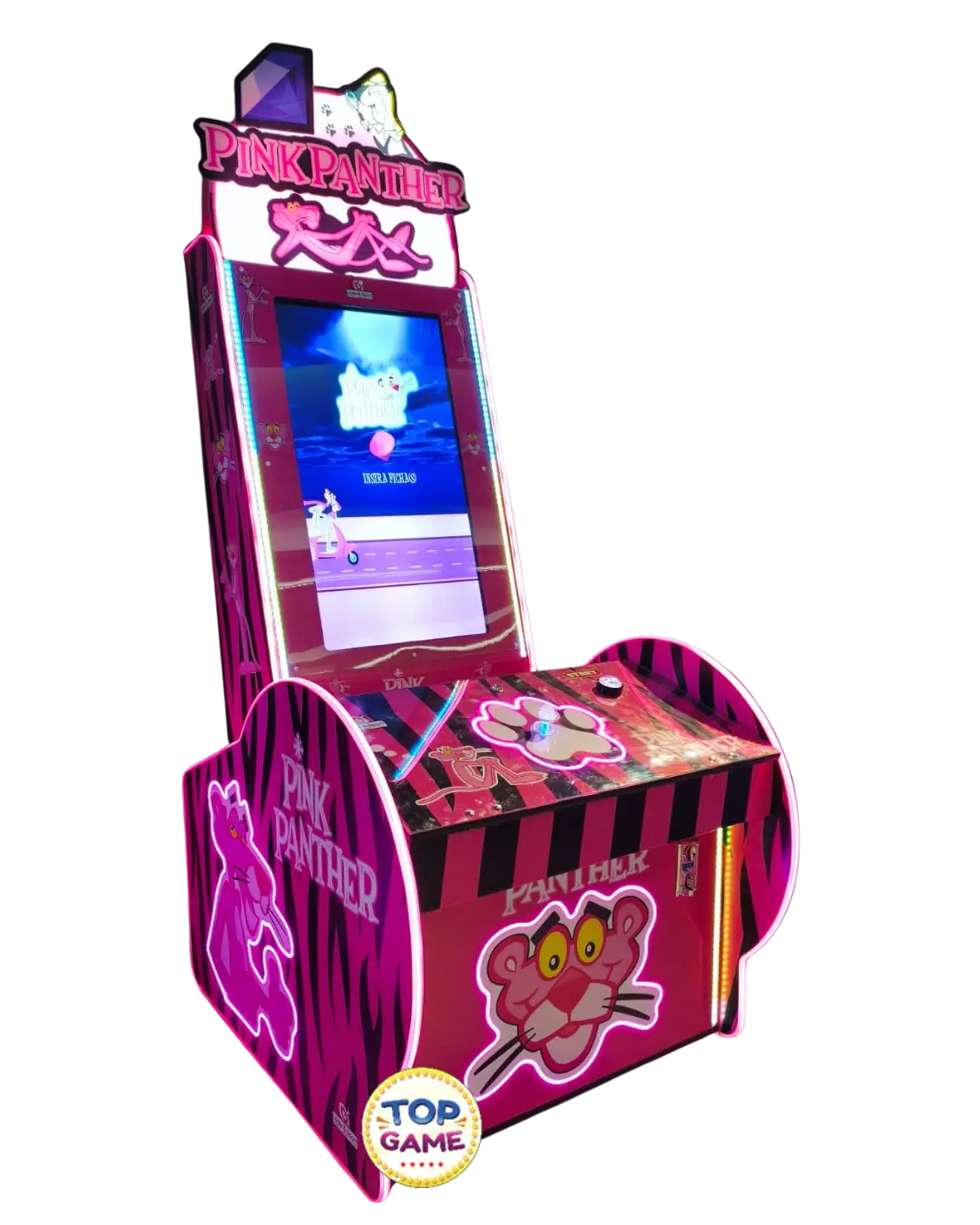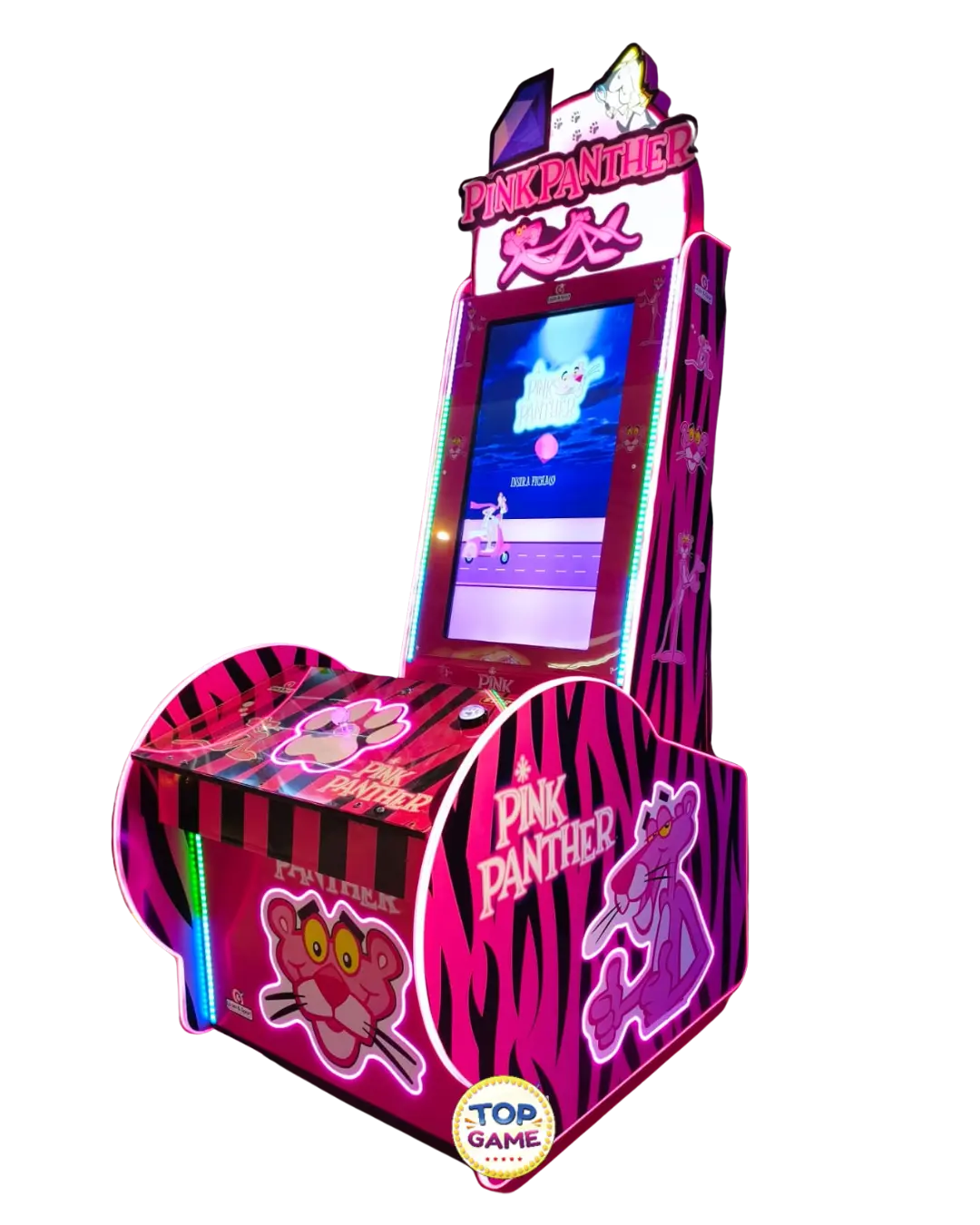 Pink Panther é uma máquina vibrante e divertida, inspirada no famoso personagem dos desenhos animados. Seu visual é um show à parte: todo iluminado com LEDs em tons de rosa, preto e branco, ele chama atenção instantaneamente em qualquer loja, buffet ou shopping.